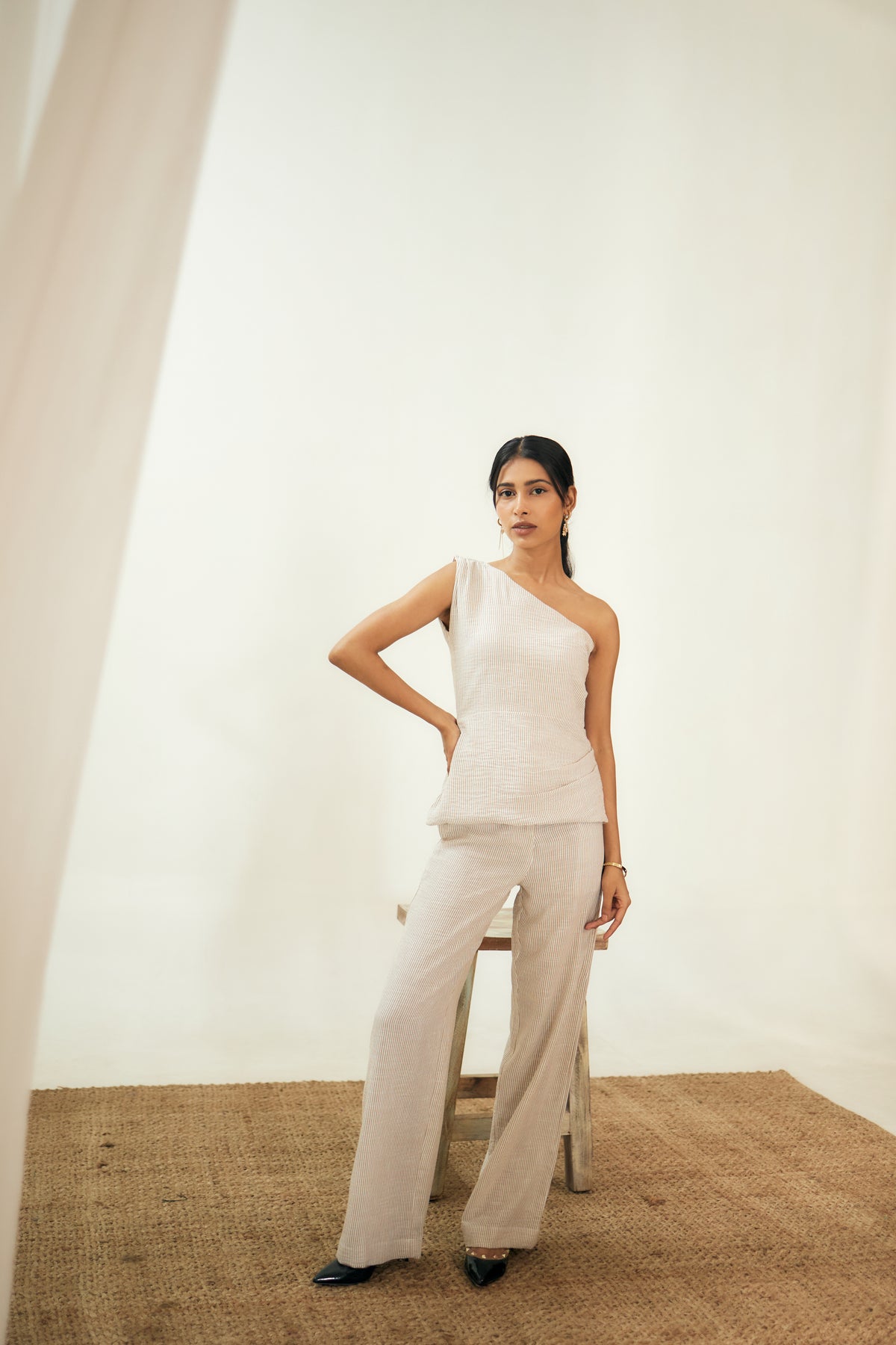 * Material- Cotton * Fully Lined * One Shoulder * Ruching detail on shoudler and waistline * Full length * Side zipper